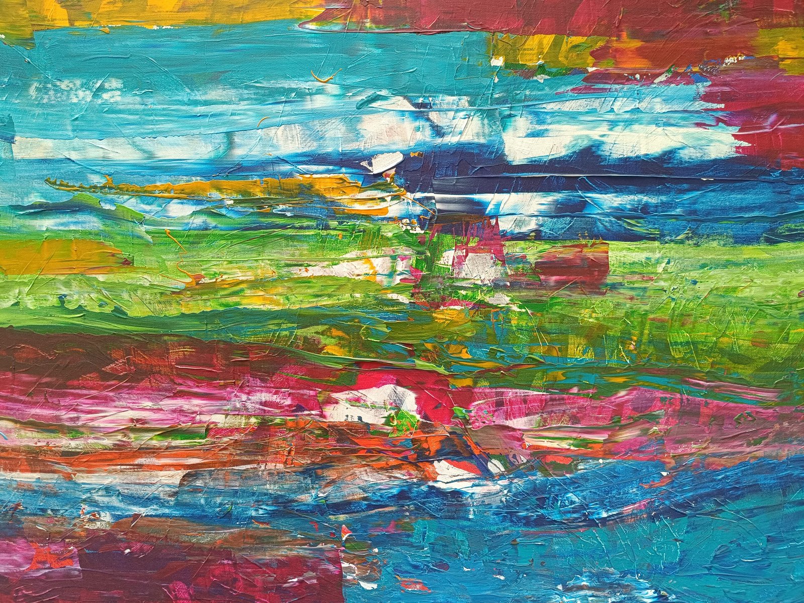 Aleksandra’s paintings are vibrant and captivating, filled with rich, expressive colors. When looking at her works, one can see a playful dance of colors that either blend into a harmonious whole or, conversely, burst apart in a powerful display.